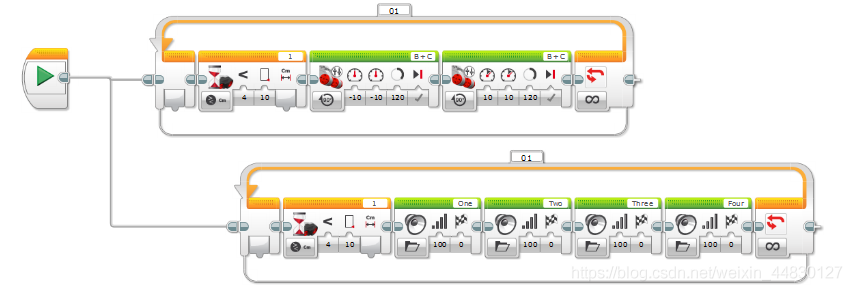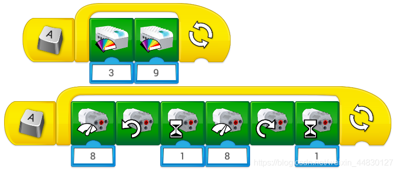 软硬件结合的机器人编程教育(如乐高编程)却不同,课程不仅涵盖软件编程知识而且会涉及相关硬件知识。主要是通过一些零件进行组装完成搭建,然后再通过可视化图形代码块编写程序,从而实现对机器人的控制,如目前比较流行的WeDo编程和EV3编程(如下图)。