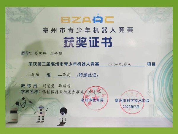 亳州市青少年机器人竞赛——二等奖